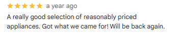 Enjoy peace of mind with every purchase. All our appliances come backed by a full 1‑year warranty, plus reliable repair support from our trained technicians. We stand behind what we sell—so you can shop with confidence knowing we’re here to keep your home running smoothly.