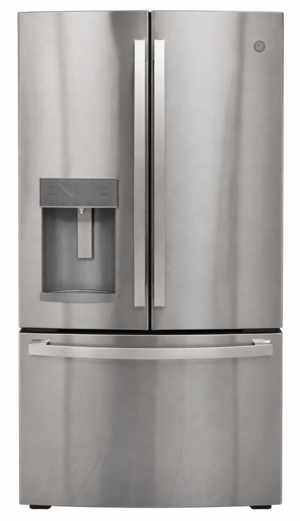 GE (General Electric) This GE French door refrigerator delivers a sleek, modern look with the performance to match. Its spacious interior, dual-door fresh food section, and smooth‑glide bottom freezer make organization effortless. The built‑in water and ice dispenser with digital controls adds everyday convenience, while GE’s reliable cooling technology keeps food fresher longer. Finished in fingerprint‑resistant stainless steel, it’s a stylish, durable upgrade for any kitchen, perfect for families, entertainers, or anyone looking for a premium appliance at a great value.