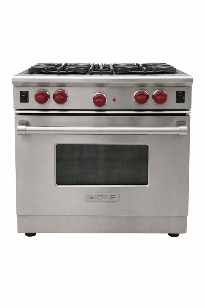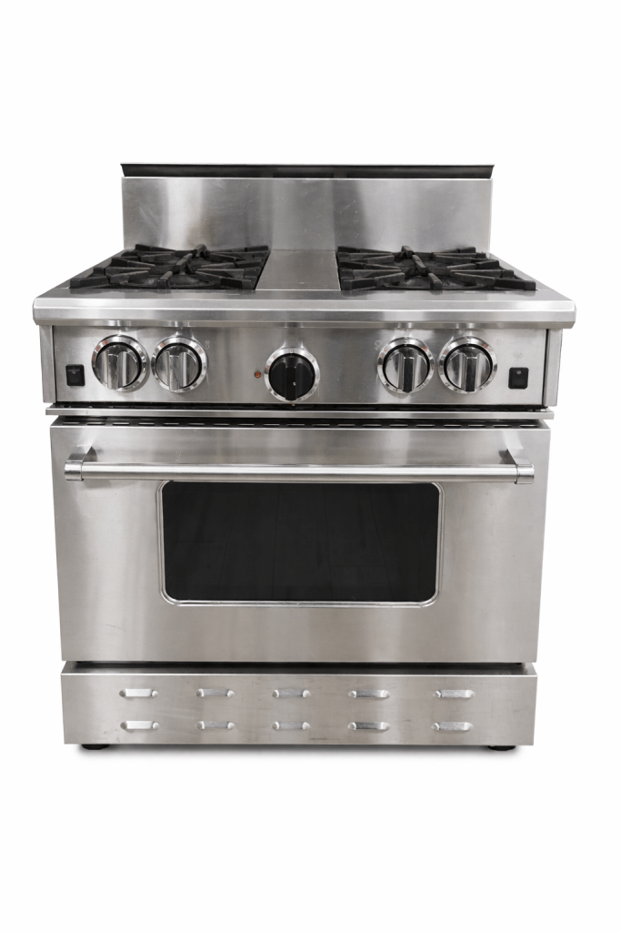 These commercial‑style gas range is designed for serious home cooks and professional kitchens alike. Built with a durable stainless‑steel exterior, it features four high‑output burners that deliver precise heat control for everything from rapid boiling to gentle simmering. The large front‑view oven provides even baking and roasting performance, while sturdy control knobs and simple ignition buttons make operation intuitive.
